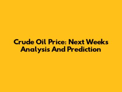 Crude Oil Price: Next Week's Analysis And Prediction